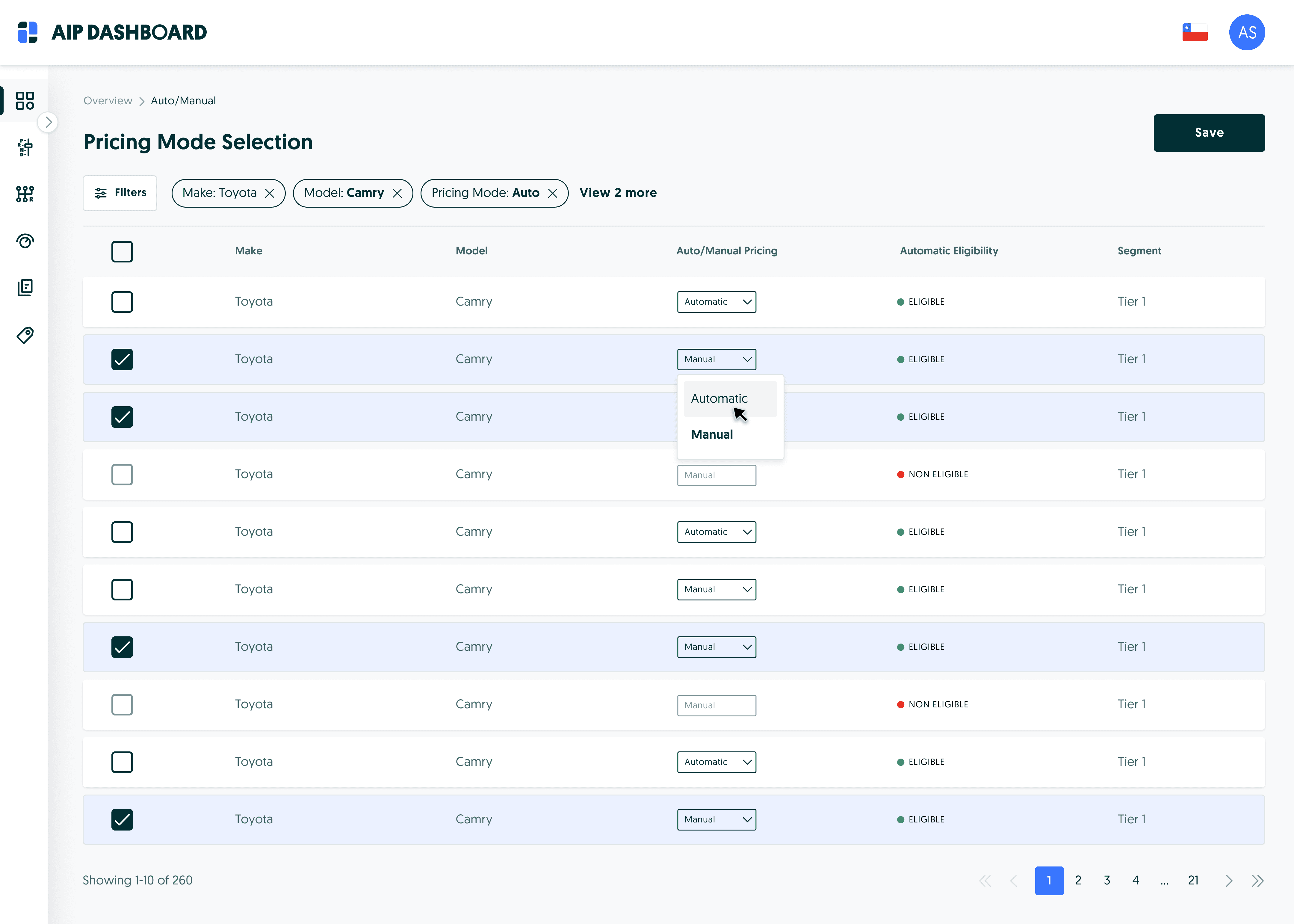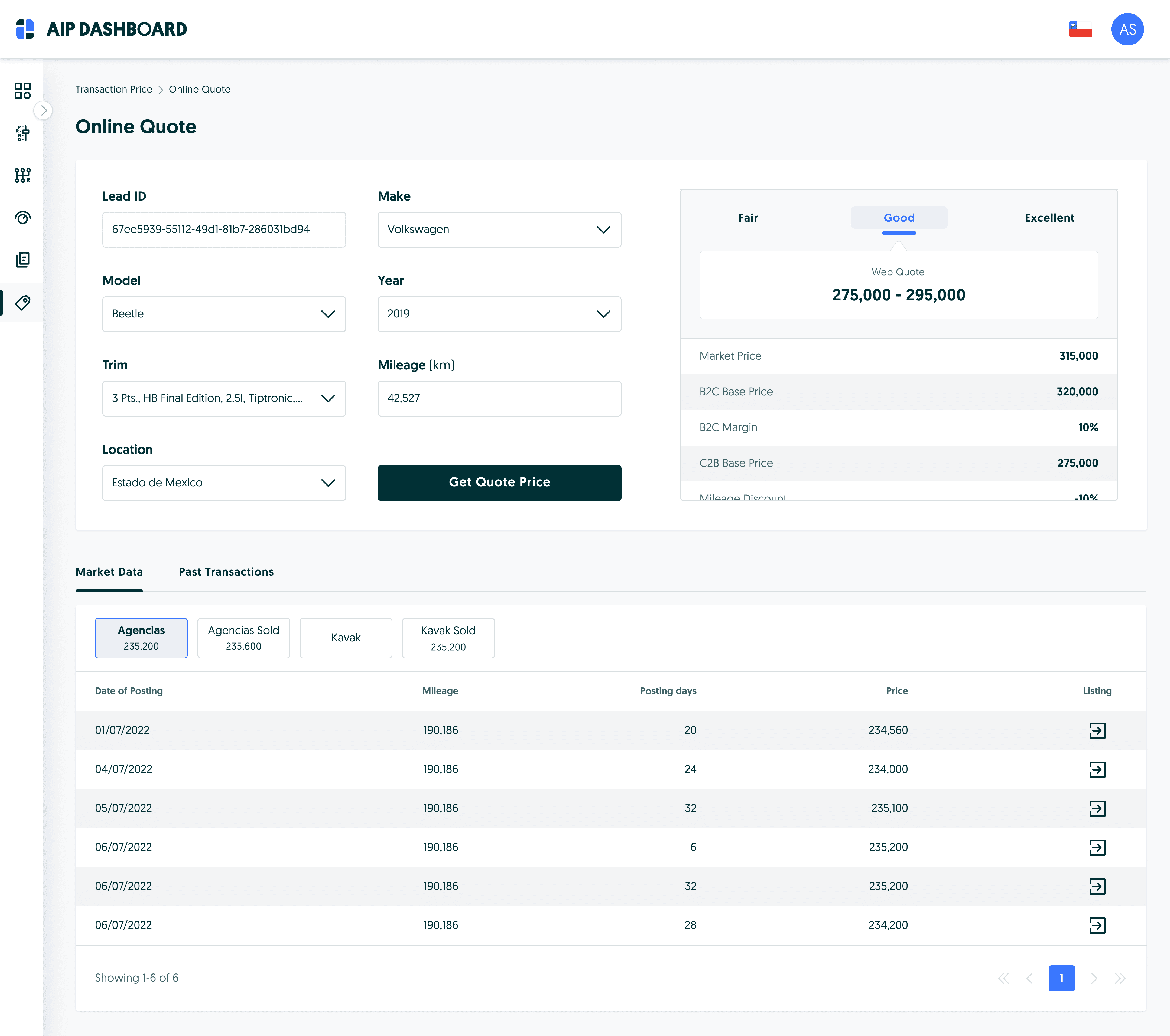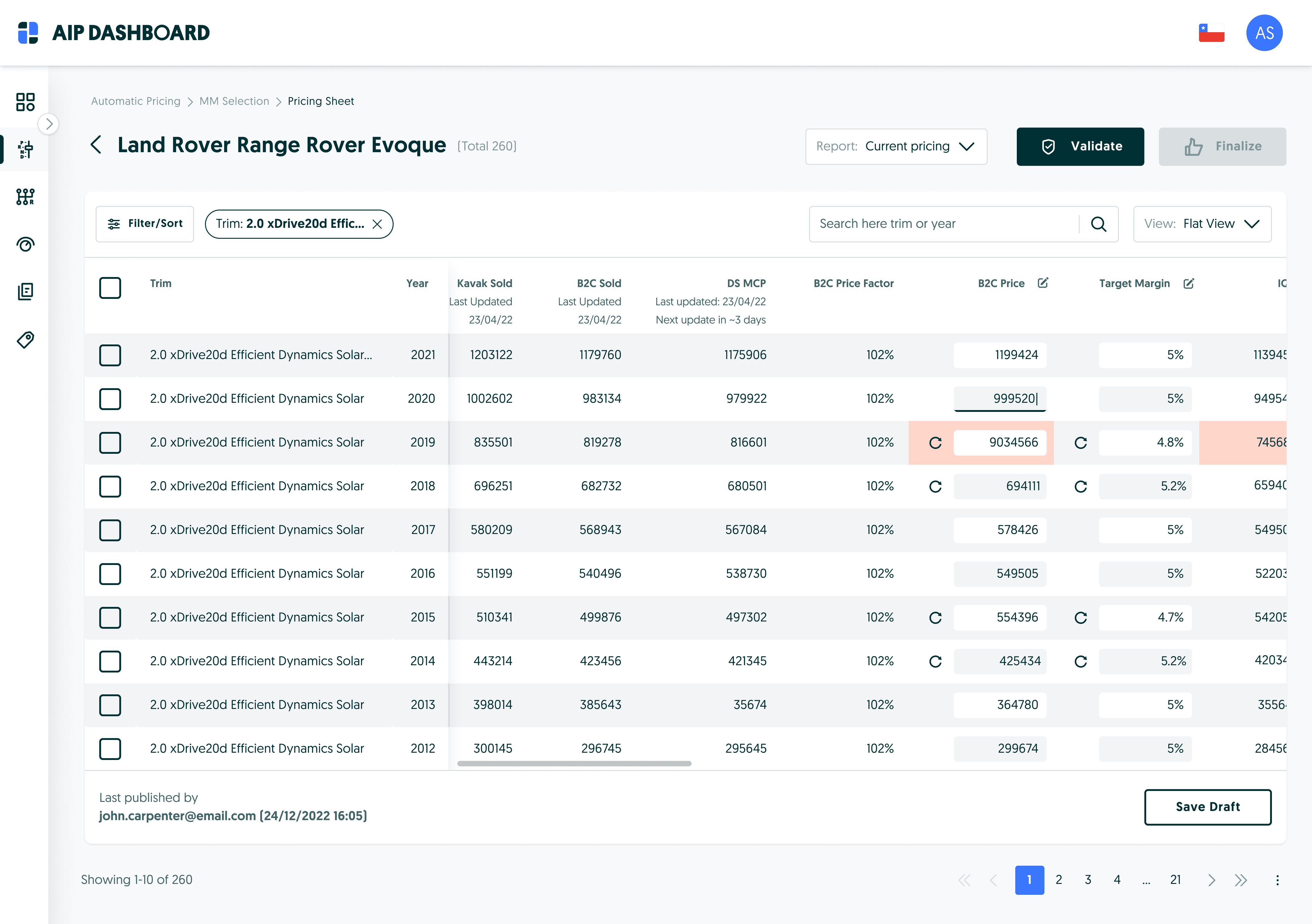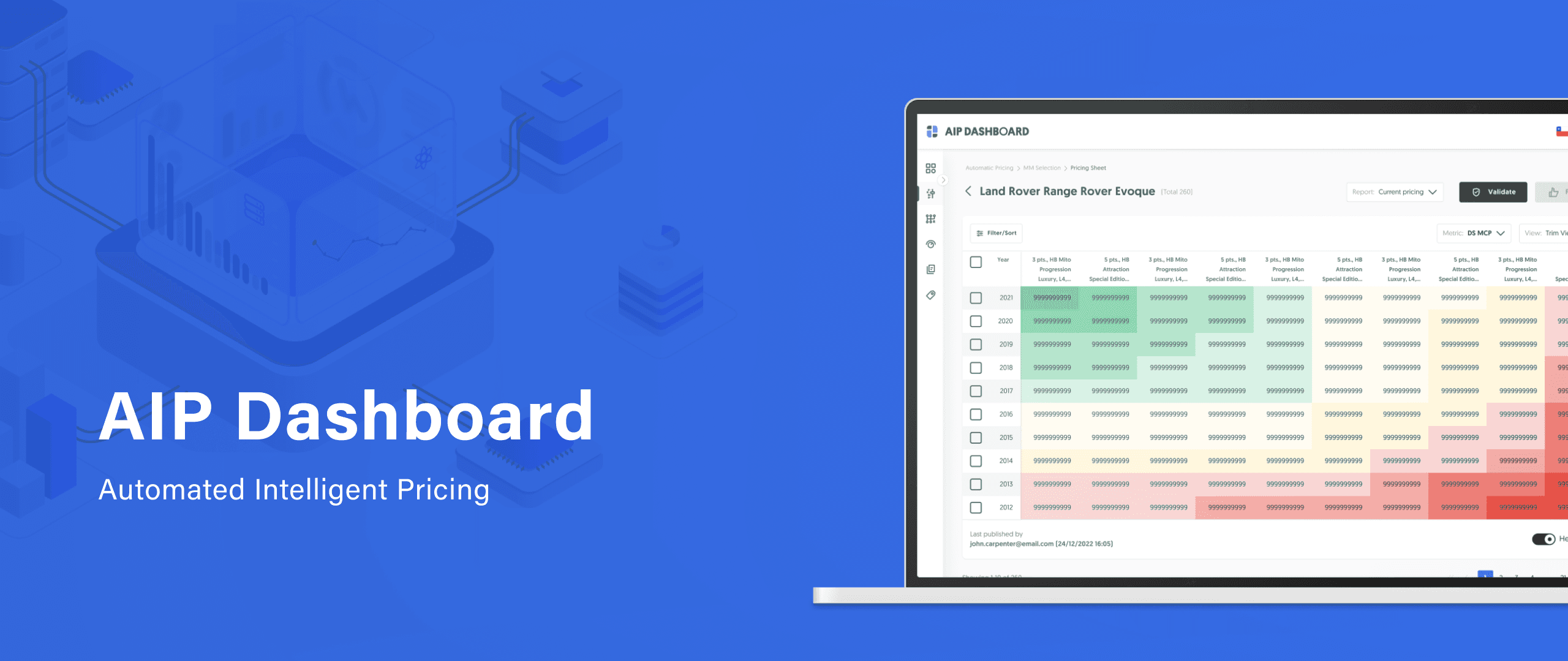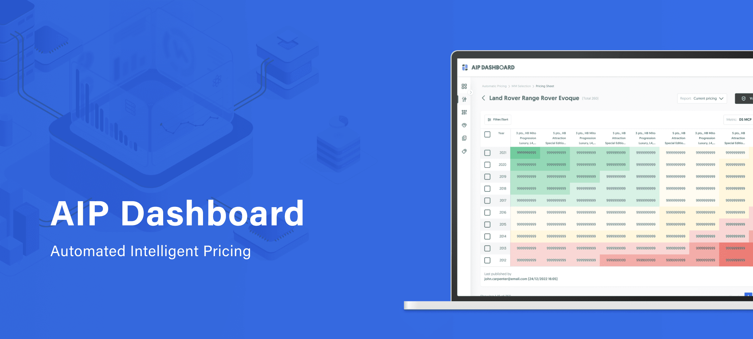 Automated Intelligent Pricing (AIP) is an automated, data-driven pricing tool that allows users to adopt effective pricing strategies and make well-informed, profitable decisions for the purchase and sale of pre-owned cars.