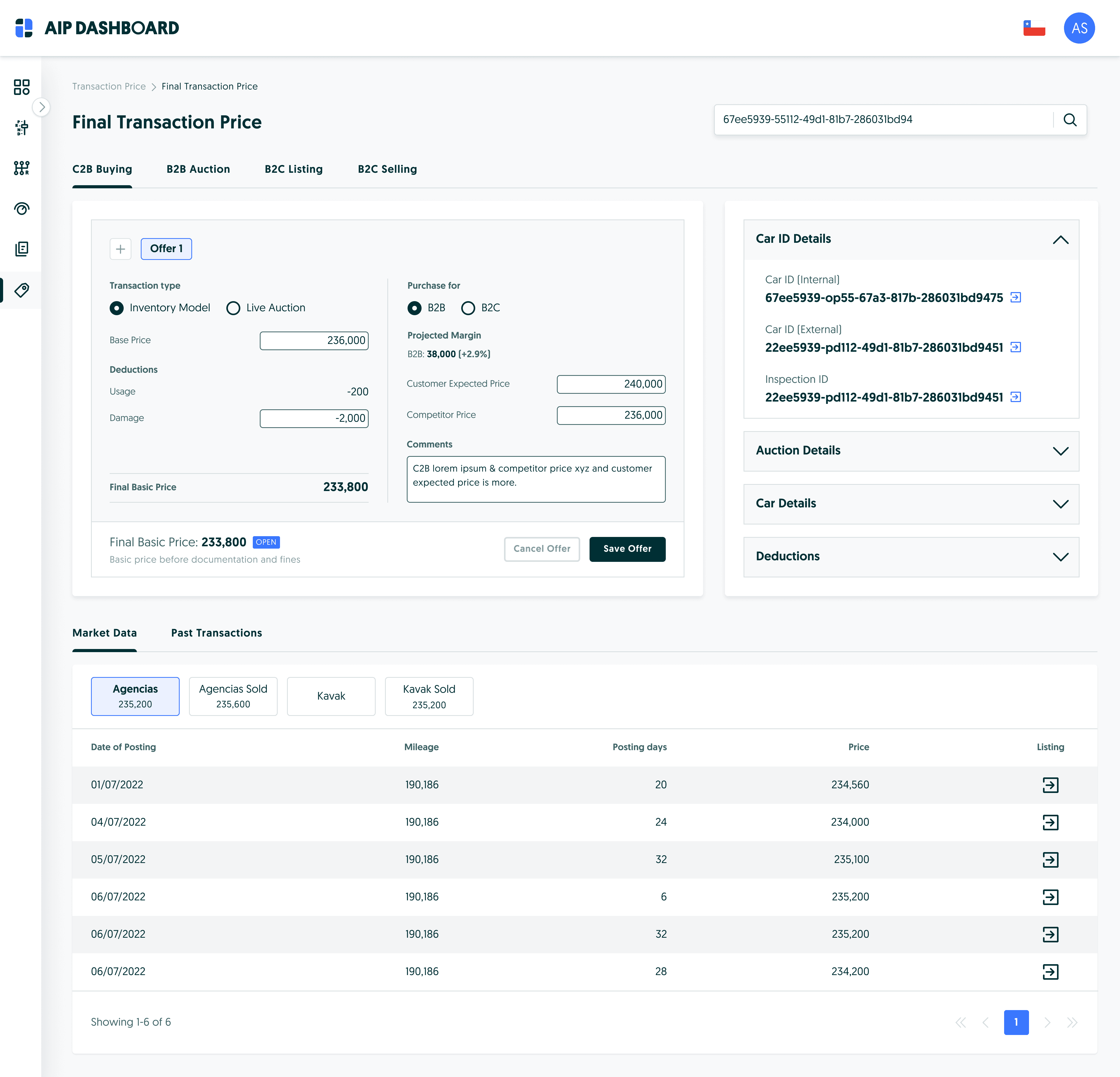 This allows users to use data recommended price to set final transaction prices for buying, auctioning and selling car and negotiating within a predefined margin limit.