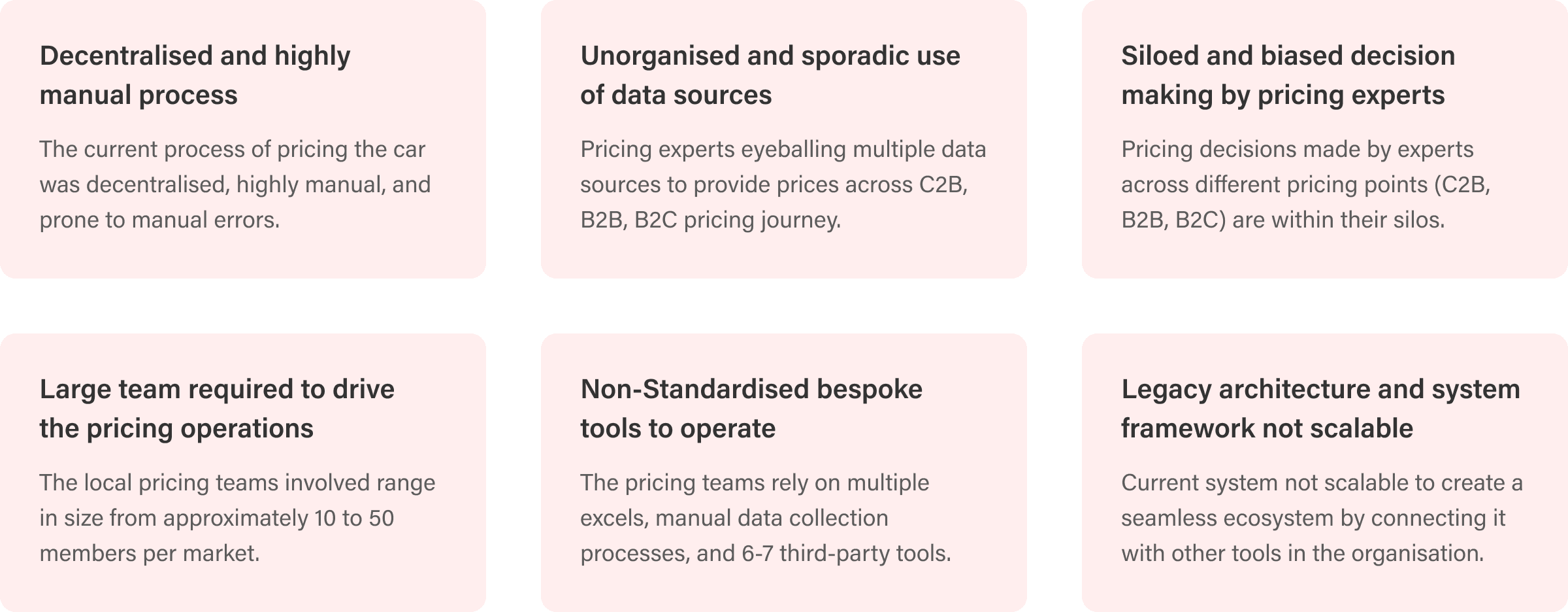 The business identified several gaps in the current pricing process adopted by the pricing team and wanted to standardise and automate the pricing process to tackle such issues and create a seamless ecosystem on a global level.